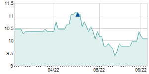 | 3/15/2013 | -0.20 / -1.94% | 10.10 | 10.10 | 10.00 | 10.10 | 10.10 | 8.20 | 4,060 |   |