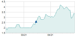 | 3/3/2021 | +0.40 / +9.52% | 4.20 | 4.60 | 4.20 | 4.60 | 4.59 | 4.60 | 13,600 |   |