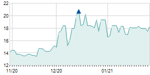 | 5/18/2017 | -0.30 / -2.07% | 14.50 | 14.60 | 14.20 | 14.20 | 14.31 | 6.01 | 1,845,490 |   |