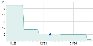 | 5/17/2012 | -0.90 / -4.74% | 18.10 | 19.10 | 18.10 | 18.10 | 18.10 | 4.64 | 2,232,150 |   |