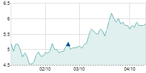 | 5/8/2015 | +0.50 / +5.75% | 8.80 | 9.20 | 8.50 | 9.20 | 8.84 | 8.38 | 329,800 |   |