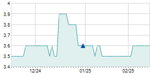 | 2/16/2024 | -0.30 / -3.23% | 9.10 | 9.10 | 9.00 | 9.00 | 9.05 | 8.69 | 16,000 |   |