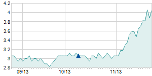 | 3/18/2013 | 0.00 / 0.00% | 3.90 | 4.00 | 3.70 | 3.90 | 3.90 | 1.86 | 146,830 |   |