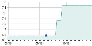 | 10/10/2019 | -0.36 / -4.26% | 8.47 | 8.67 | 8.10 | 8.10 | 8.25 | 4.83 | 143,820 |   |