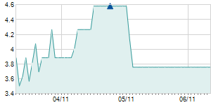 | 2/4/2020 | -0.25 / -4.07% | 6.40 | 6.50 | 5.90 | 5.90 | 6.07 | 3.79 | 135,250 |   |
