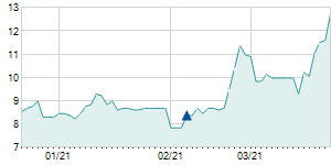 | 3/11/2019 | -0.04 / -1.20% | 3.34 | 3.37 | 3.25 | 3.30 | 3.30 | 1.90 | 133,460 |   |
