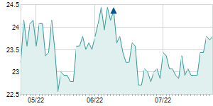 12/8/2022 -1.20 / -4.53% 26.40 26.50 25.30 25.30 25.89 22.07 11,100