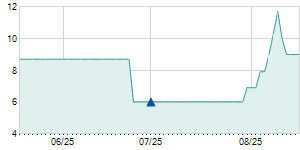 | 4/13/2022 | -0.10 / -0.85% | 11.80 | 11.80 | 11.70 | 11.70 | 11.70 | 9.53 | 6,600 |   |