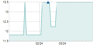 | 5/14/2013 | -0.10 / -0.92% | 10.90 | 10.90 | 10.80 | 10.80 | 10.80 | 6.57 | 14,000 |   |