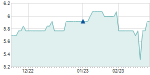 | 1/9/2023 | -0.40 / -1.08% | 38.50 | 38.50 | 36.60 | 36.70 | 37.10 | 22.76 | 55,200 |   |