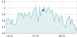 | 5/8/2025 | -0.10 / -0.77% | 13.00 | 13.20 | 12.75 | 12.95 | 12.95 | 12.67 | 789,200 |   |