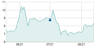 Closing price on 8/14/2020