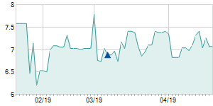 | 9/19/2017 | +0.15 / +0.78% | 19.05 | 19.50 | 19.05 | 19.30 | 19.29 | 12.31 | 2,242,660 |   |