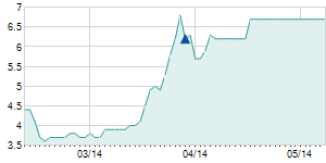 | 10/29/2014 | +0.40 / +4.60% | 8.90 | 9.20 | 8.90 | 9.10 | 9.03 | 3.05 | 379,099 |   |