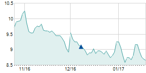 | 1/9/2017 | -1.30 / -3.71% | 32.55 | 34.80 | 32.55 | 33.70 | 34.16 | 5.13 | 7,670 |   |