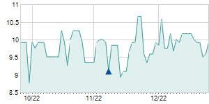 | 9/27/2023 | +0.15 / +0.66% | 22.50 | 22.85 | 22.30 | 22.85 | 22.54 | 22.85 | 76,600 |   |