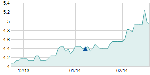 Closing price on 1/25/2016