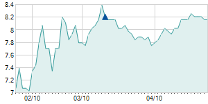 | 12/9/2011 | -0.20 / -2.17% | 9.10 | 9.10 | 8.90 | 9.00 | 9.00 | 2.73 | 47,700 |   |