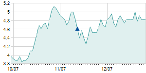 | 11/5/2014 | 0.00 / 0.00% | 6.40 | 6.50 | 6.30 | 6.40 | 6.40 | 5.44 | 120,040 |   |