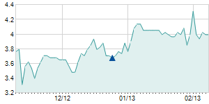 | 2/10/2015 | 0.00 / 0.00% | 4.30 | 4.50 | 4.30 | 4.40 | 4.40 | 3.74 | 47,110 |   |  |