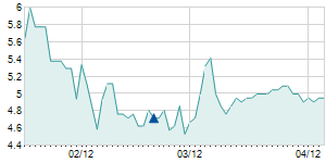 | 3/6/2015 | -0.10 / -2.08% | 4.70 | 4.80 | 4.60 | 4.70 | 4.70 | 3.99 | 122,230 |   |