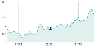 Closing price on 1/21/2013