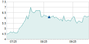 | 11/4/2013 | +0.30 / +5.17% | 5.80 | 6.10 | 5.80 | 6.10 | 6.10 | 4.85 | 241,800 |   |
