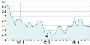 | 4/13/2017 | -3.60 / -9.97% | 33.00 | 33.00 | 32.50 | 32.50 | 32.89 | 6.71 | 5,651 |   |