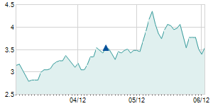 Closing price on 8/15/2012