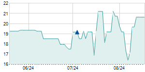 | 1/22/2021 | +1.30 / +6.95% | 19.20 | 20.00 | 19.10 | 20.00 | 19.82 | 13.50 | 14,537,000 |   |