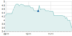 | 1/17/2014 | -0.30 / -2.34% | 12.90 | 12.90 | 12.50 | 12.50 | 12.50 | 3.17 | 764,110 |   |