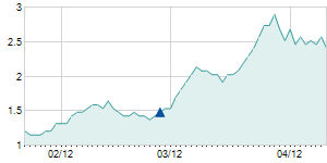 Closing price on 3/15/2012
