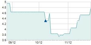 | 4/26/2011 | -2.00 / -3.88% | 51.00 | 51.00 | 49.50 | 49.50 | 49.50 | 4.53 | 19,600 |   |