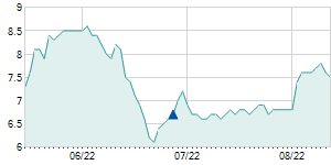 | 8/31/2015 | -1.60 / -3.58% | 44.80 | 49.00 | 43.10 | 43.10 | 44.93 | 9.61 | 3,600 |   |