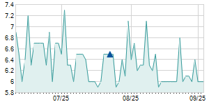 | 10/30/2023 | -0.40 / -5.41% | 7.30 | 7.30 | 7.00 | 7.00 | 7.17 | 7.00 | 134,100 |   |