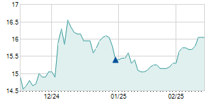 | 2/20/2024 | -0.25 / -1.68% | 15.00 | 15.00 | 14.60 | 14.65 | 14.76 | 14.55 | 2,106,000 |   |