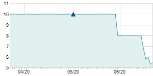 | 7/27/2020 | -0.66 / -6.95% | 8.83 | 9.48 | 8.83 | 8.83 | 8.94 | 8.03 | 742,340 |   |