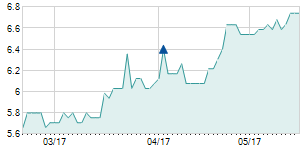 | 12/12/2006 | +3.50 / +4.86% | 75.50 | 75.50 | 75.50 | 75.50 | 75.50 | 6.72 | 19,900 |   |