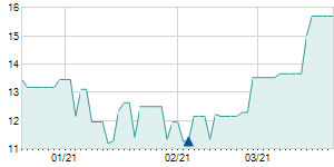 Closing price on 2/14/2020