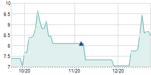 | 1/8/2024 | -0.20 / -1.47% | 13.40 | 13.40 | 13.40 | 13.40 | 13.40 | 12.79 | 1,000 |   |