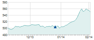 Closing price on 2/12/2025