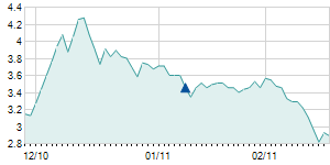 | 4/15/2015 | -0.10 / -0.27% | 37.40 | 37.50 | 35.00 | 37.00 | 36.36 | 13.09 | 1,760 |   |