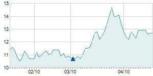 | 10/18/2012 | 0.00 / 0.00% | 6.90 | 7.00 | 6.90 | 7.00 | 7.00 | 5.91 | 2,250,200 |   |