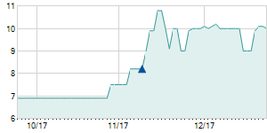 | 11/1/2012 | +0.10 / +1.45% | 6.80 | 7.00 | 6.80 | 7.00 | 7.00 | 5.91 | 4,000 |   |
