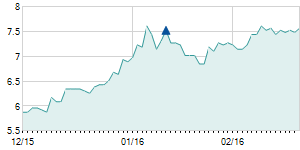 Closing price on 2/16/2023