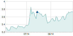| 8/19/2016 | +0.50 / +0.68% | 74.50 | 76.00 | 71.00 | 74.50 | 73.59 | 29.92 | 3,370 |   |