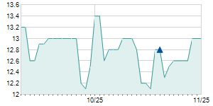 | 11/30/2010 | +0.40 / +4.88% | 8.70 | 8.70 | 8.50 | 8.60 | 8.60 | 4.96 | 5,400 |   |