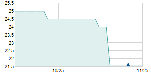 | 12/23/2016 | -0.20 / -1.00% | 21.00 | 21.00 | 19.80 | 19.80 | 20.16 | 4.43 | 500 |   |