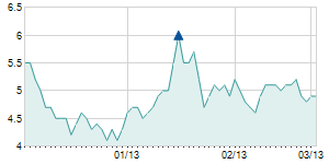 7/12/2013 +0.30 / +4.48% 6.90 7.10 6.70 7.00 7.00 2.04 153,180