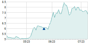 | 9/26/2025 | +0.30 / +4.29% | 7.10 | 7.50 | 7.10 | 7.30 | 7.29 | 7.30 | 4,178,700 |   |